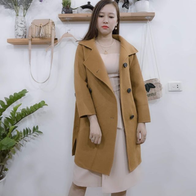 Áo khoác Măng Tô Dạ cashmere 2 mặt , đính cá tay và túi chéo phong cách hàn Quốc